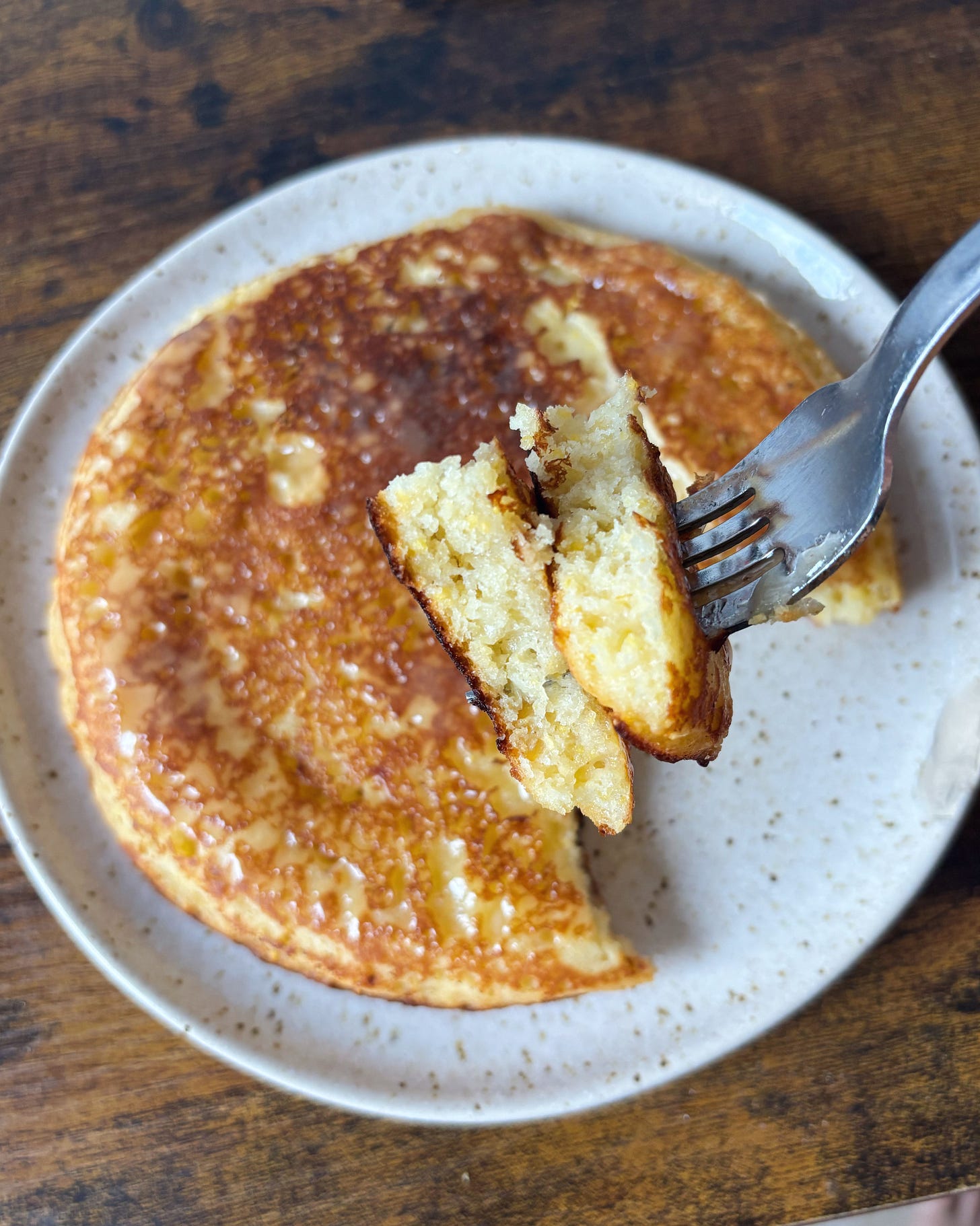 If you’ve noticed that my Substack has been dormant for the past two months, I’m sorry and I promise I’m back. The end of last year was a chaotic flurry of concurrently juggling family in town for the holidays, this mysterious flu like virus that seems to linger for weeks, and opening a bakery (!) among other things. More on the latter soon. That’s all to say, I’ve been busy and craving some stillness and alone time more than ever. Yesterday Jordan and I both had the day off and absolutely nothing planned — a pretty rare occurrence. I made us these crispy corncakes for breakfast, and I think they single handedly gave us the energy to clean our apartment from top to bottom and do like 3 loads of laundry. I’m already looking forward to next Monday when I can make us these corncakes for breakfast again, they were pretty phenomenal slathered in salty butter and this insane whipped date honey we got from a trip to Philly over thanksgiving. Anyways, as always thank you for sticking around and I’m excited to share some things this month, like my sourdough journey (I made my first ever loaf just last month!), and my formula for turning (almost) any recipe gluten free. Talk soon!